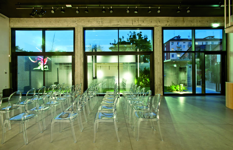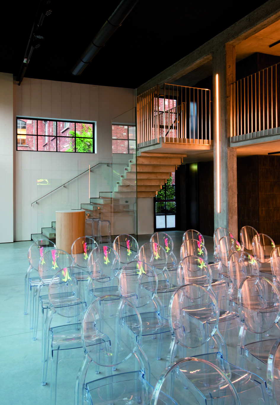 Il Loft è il nuovo spazio eventi di Officine del Volo: una quarta sala che amplia le possibilità progettuali, perfetta per creare momenti diversi all’interno di un evento o per ospitare piccoli format esclusivi. Tecnologicamente completo e concepito come soluzione integrata, il Loft unisce una raffinata architettura contemporanea ad un autentico contesto industriale, dove gli elementi e la materia diventano protagonisti. Lo spazio si apre direttamente su giardino esterno privato, creando una connessione fluida tra interno ed esterno attraverso le sue ampie vetrate, per un’esperienza immersiva che valorizza in contemporanea entrambi gli ambienti.