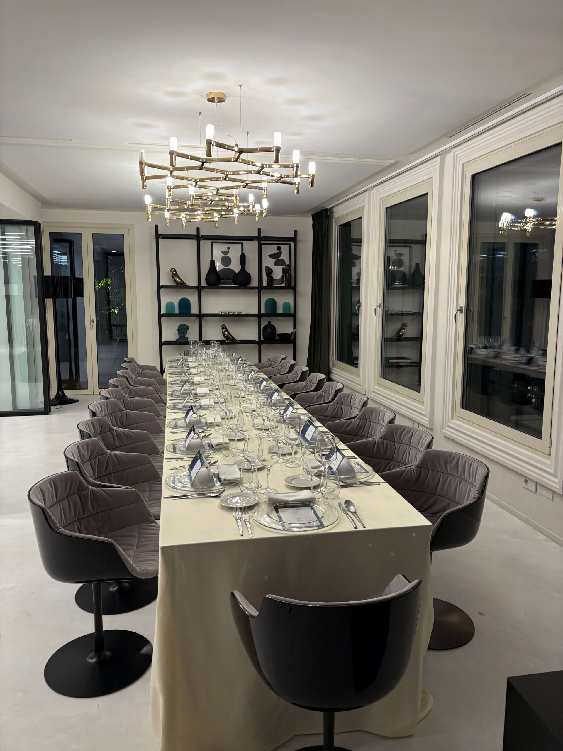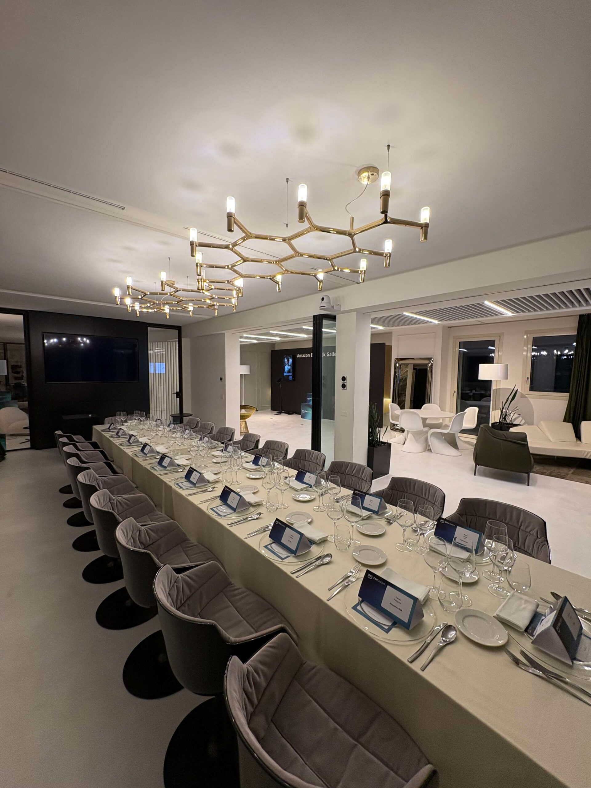 La location di circa 200 mq + ampia terrazza esterna è completamente arredata | Area catering attrezzata | Banco bar/Desk accredito | Guardaroba | Sala conferenza dotata di un monitor da 75” pollici e un monitor da 65”.